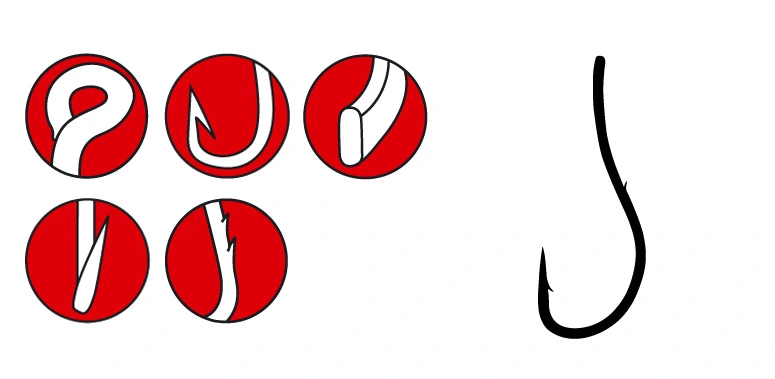3113 in het rood is een dundradige haak met weerhaken op de steel, zodat je aas goed blijft zitten. Voorzien van sterk oog, zodat je makkelijk kunt knopen. De wijdere bocht vergroot de inhakinskans bij grotere vissen.