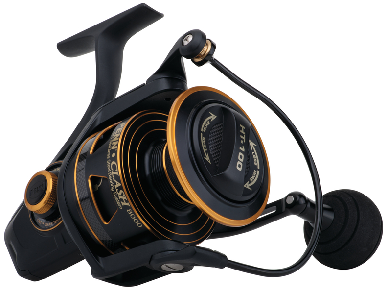 De PENN® Clash® heeft alles wat men mag verwachten van een legendarische fabrikant zoals PENN. Van binnen naar buiten maakt het tandwielmechanisme gebruik van onze Dura-Gear technologie, die een steviger en duurzamer tandwiel biedt. 9 afgesloten lagers zorgen dat alles op één lijn blijft en vrij kan bewegen, terwijl een volledige stalen behuizing verdraaiingen door grote weerstandskrachten voorkomt. Andere eigenschappen zijn o.a. een dikke aluminium beugel, langzaam oscillatiesysteem voor een perfecte lijnligging, Line Capacity Rings, en een spoel die geschikt is voor gevlochten lijnen.