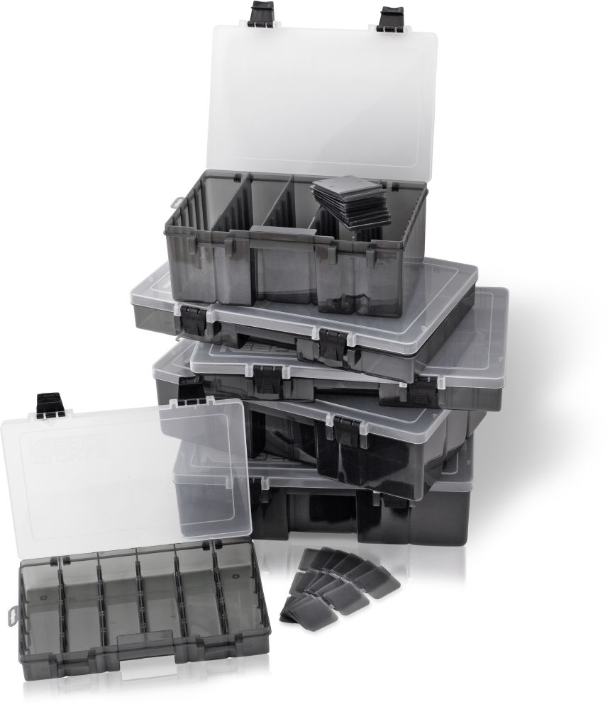 Tackle Keeper – de slimme systeemboxen van Black Cat! Hoogwaardig X-Strong kunststof materiaal met ‘UV-bescherming’ om de kleuren van je kunstaas intact te houden, geven deze tackleboxen niet alleen een lange levensduur, maar beschermt ook kunstaas en materialen. Dankzij de verschillende vakindelingen per model kun je door jou gewenste box geheel naar eigen wens vullen met materialen. De clips zijn afneembaar, bieden een goede greep en sluiten optimaal. Bovendien verschaft de transparante deksel een goed overzicht van het klein materiaal. Daarnaast zijn de Tackle Keeper ‘wormproof’, dus bestand tegen weekmakers en daarmee geschikt voor alle soorten shads en ander softplastic kunstaas. Beschikbaar in zes uitvoeringen.
