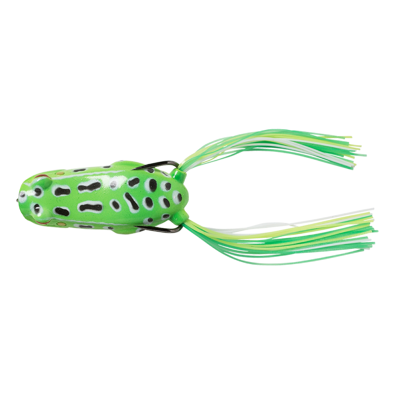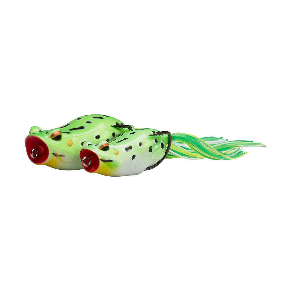 Hollow Body frogs with superb details and a realistic profile. Lively, durable Silicone Skirt legs. 2 Models, the Walk frog, that walks across the surface on retrieve and Pop Frog, that makes a deep plopping sound on the pull Both models build over an ultra sharp Double hook – with detachable single hook stinger! Superb for Bass & Pike!