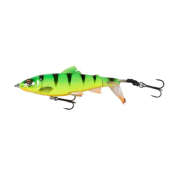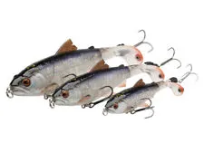 Based on a 3D Scan of a Baby trout, with superb details and a realistic profile. The Turning tail, smashes into the water, creating a loud plopping sound, leaving a super wake and bubble trail behind the lure. The small Metal rivet in the tail enhances the sound and spit calling in the Big predator fish!
