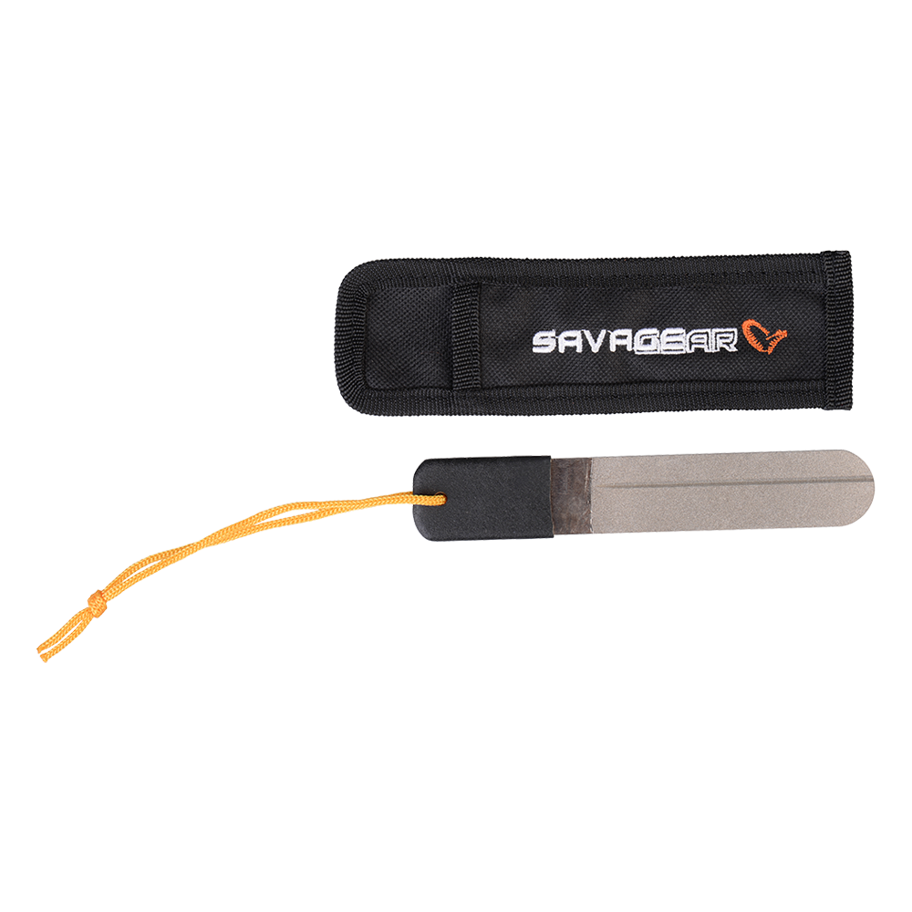 Stainless steel blade with diamond dust, great for making any hook ultra-sharp! Sharpen the hooks – with movement towards the tip! Pouch included.