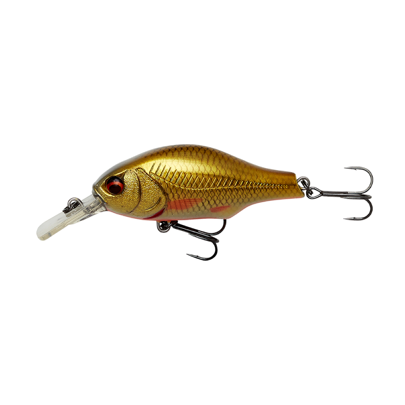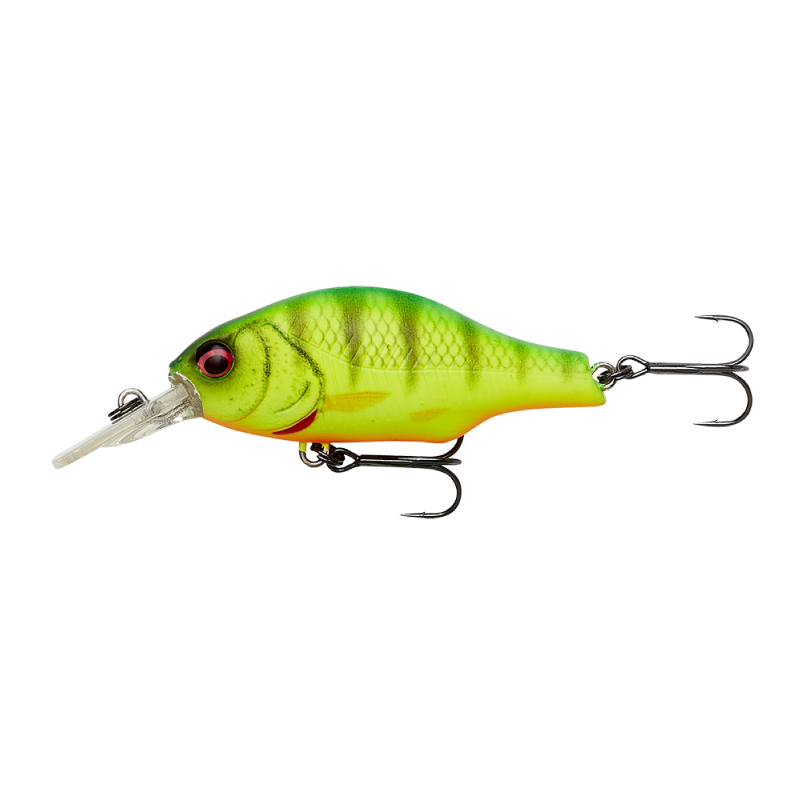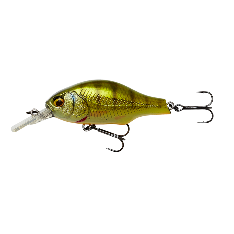 Super detailed Crankbait, with superb details. Square bill, medium runner, with a high arched Back, moving a lot of water on retrieve, great wobbling, wide action, with high buoyancy, moving up in the water on spin stop. Built in tubular rattle chamber, that sends out a loud and characteristic sound. The magnetic long cast system, with a sliding iron core, makes far and precise casting super easy. Great lure for Perch, Pike, trout, Zander, Asp and Bass.
