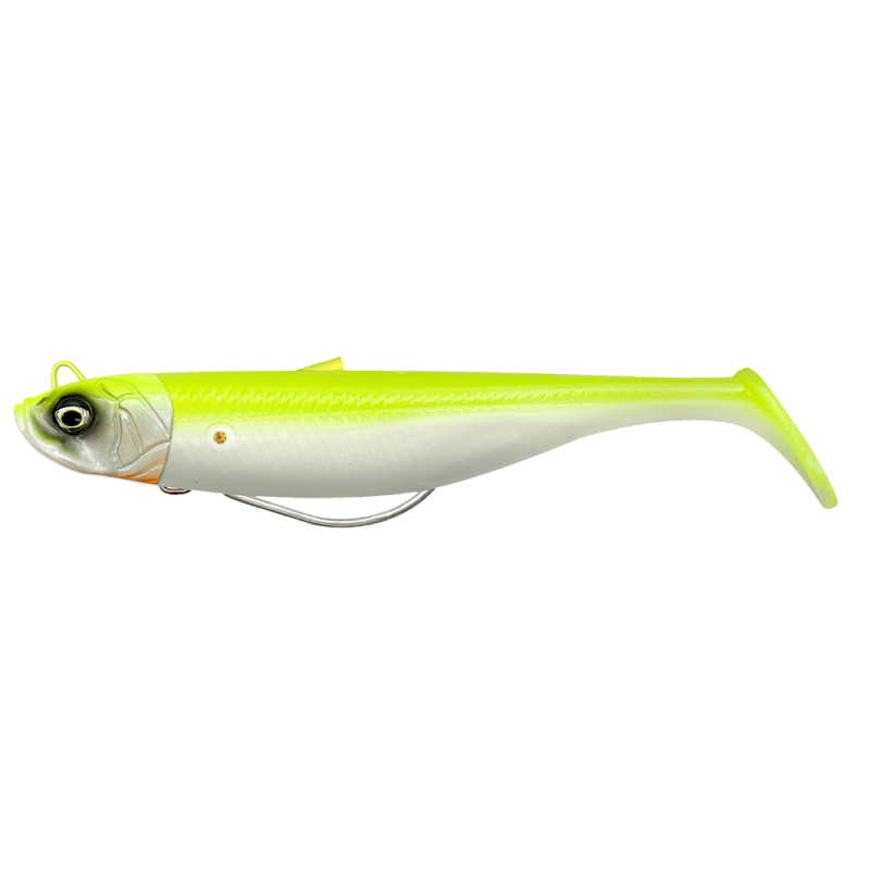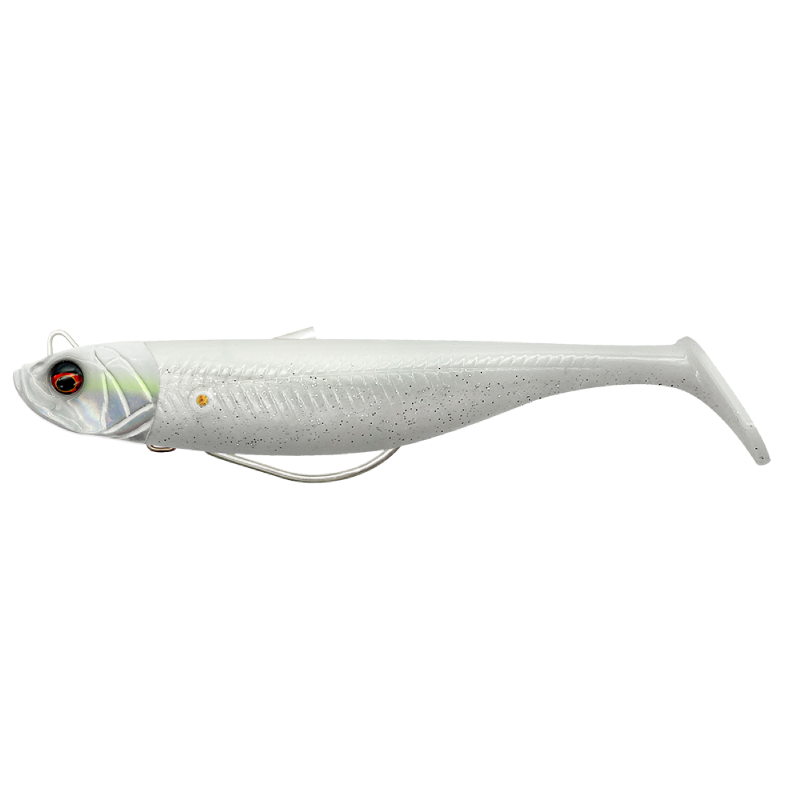 With a lively kicking action both on the drop and retrieve, baitfish imitations don’t get much more realistic than this. Utilising a unique rise and stand-up jig head that ensures a perfect action, the lure comes up on the retrieve and stands up when resting on the bottom. The Pro Peg body holder makes it possible to peg the body to the head with a toothpick, creating a very simple and secure hold. The soft PVC body comes pre-rigged with a glass rattle to give the lure an extra enticing sound. This weedless version of the lure features a strong click-on connection for the interchangeable EWG hook.