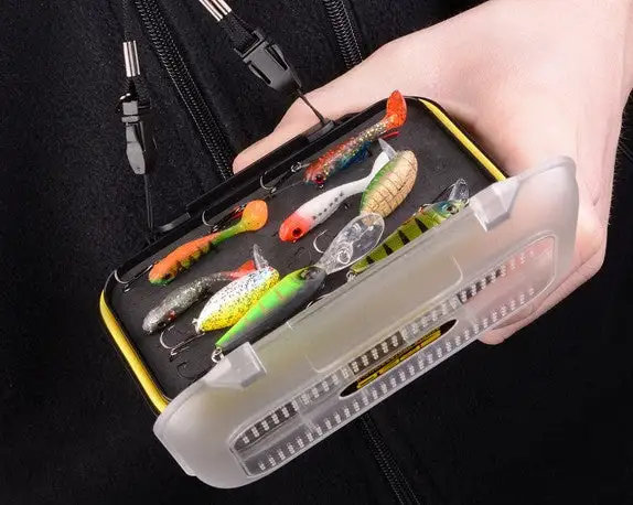 Een geweldige, dubbelzijdige stocker met EVA foam voor het opbergen van micro kunstaas, loodkopjes, stingers etc. Uitgevoerd met een halskoord zodat je er snel bij kan maar zeker ook omdat je geen verdere bagage hoeft mee te slepen.