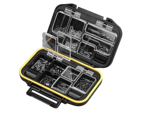 Alle kleine accessoires zoals wartels, snaps, splitrings en crimps kunnen handig opgeborgen worden in deze hoogwaardige tackle box met goed sluitende one-touch dekseltjes. De kleine tackle boxen nemen weinig plaats in en kunnen zowel voor het vissen op de boot als struinend langs de waterkant gemakkelijk meegenomen worden.