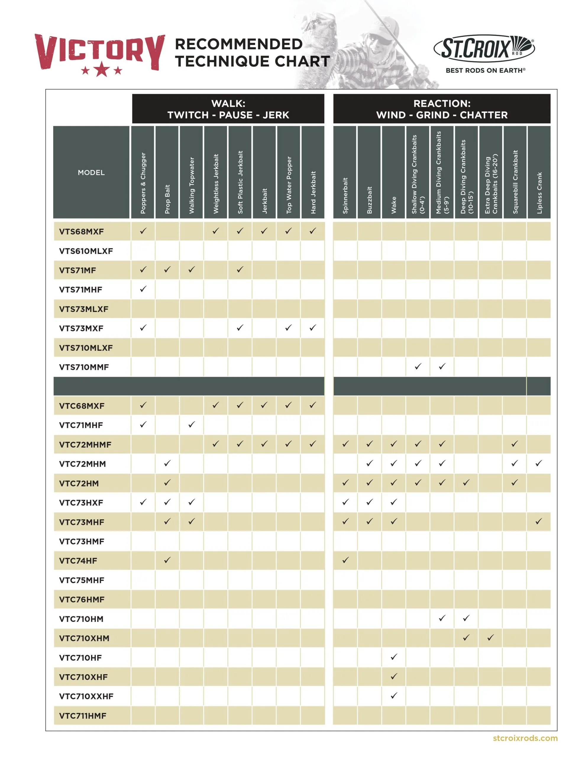 Designed and handcrafted in Park Falls Victory utilizing the combination of St. Croix’s proprietary SCVI and SCIII carbon fibers in a hybrid pattern blended to create SCIII+. Designed with the inputs of Bassheads nationwide, Victory Casting Rods features 17 balanced models focused on techniques, comfort, and the ultimate in fish ability and affordability backed by a 15 year transferable warranty, built in the USA.     Â