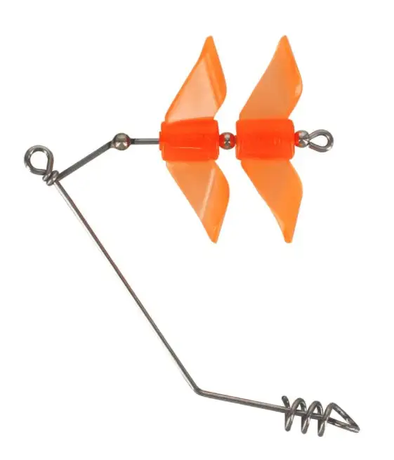 The Add-It Spinnerbait Propeller has two custom made semi-soft propellers that create a totally new and different turbulence under the water, which no predator fish can resist – they can feel it a mile away! The unique design and mount of the propellers ensures that one revolves to clockwise and the other counter-clockwise (two directions). Not only does this create an insane amount of turbulence in the water, it also ensures the Spinnerbait rig always runs straight. With a simple twist quickly Add-It to your favorite soft or hard lure and turn it into a spinnerbait! Thanks to our corkscrew system quickly and securely attach any lure with ease. Fish it slow in cold water, or fast over weed beds in the warmer months. The wide eyelet and precision-made construction ensure that your lure will swim freely at any speed.
