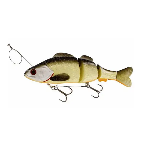 The first ever Inline hard lures to hit the market! Percy the Perch Inline hard lure is designed with a system that allows anglers to reap all the extra fish-catching benefits of fishing inline, without losing any lure design detail, swimming action or hookups! The inline rig system features a 90lbs seven-strand American Fishing Wire that runs through a specially designed tunnel in the head of Percy. The rig with two strong trebles connects to the body via a special click-and-lock system that automatically releases when a fish is hooked. Percy the Perch Inline is a hard lure/swimbait with SemiSoft fins, slow and realistic swimming action with belly flashes and a line up with amazing hand painted colors. Prepare to be amazed!